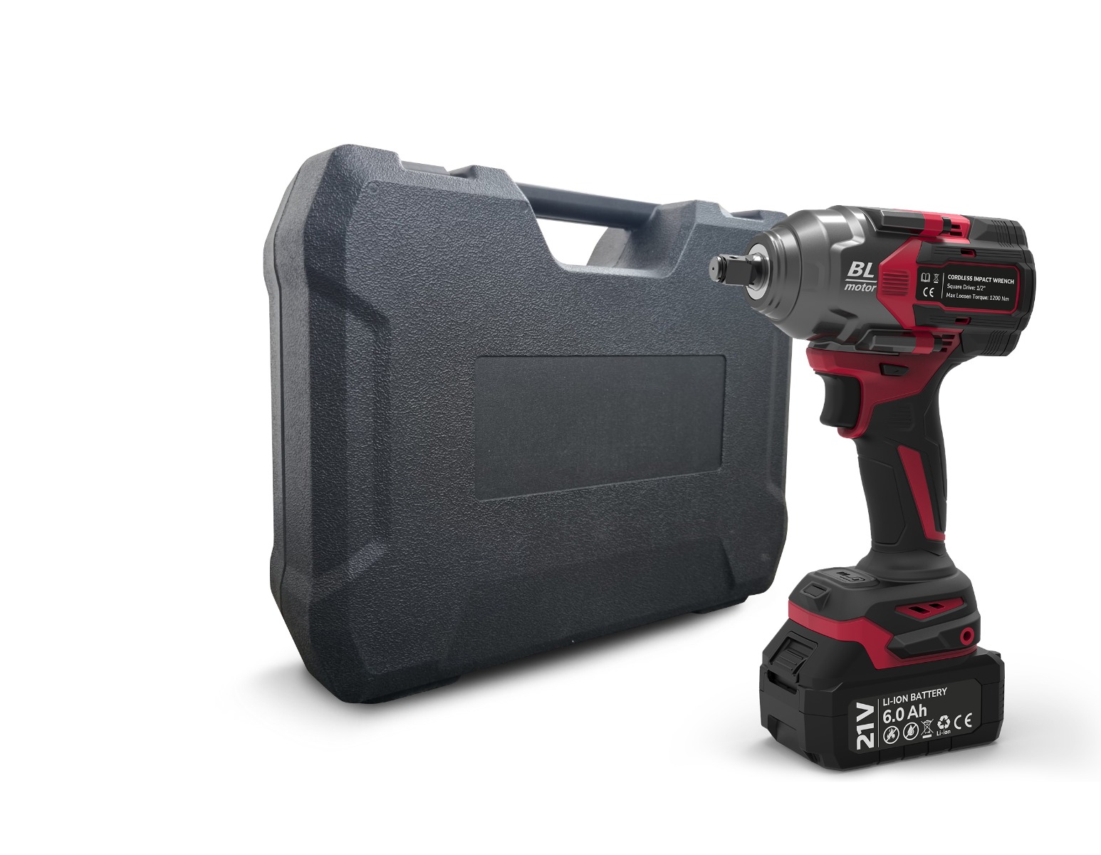 INVENTO A63 parameters: Anvil: 1/2″;Wrench weight: 2 kg;Wrench weight (battery included): 2.8 kg;Torque: 1200Nm;Brushless motor;Battery: Li-Ion 21V / 6Ah (2 pcs);R.p.m: 2400   Set includes: Impact Wrench PXA63, 2 batteries 6Ah, charger, set of 3 sockets for aluminum rims.