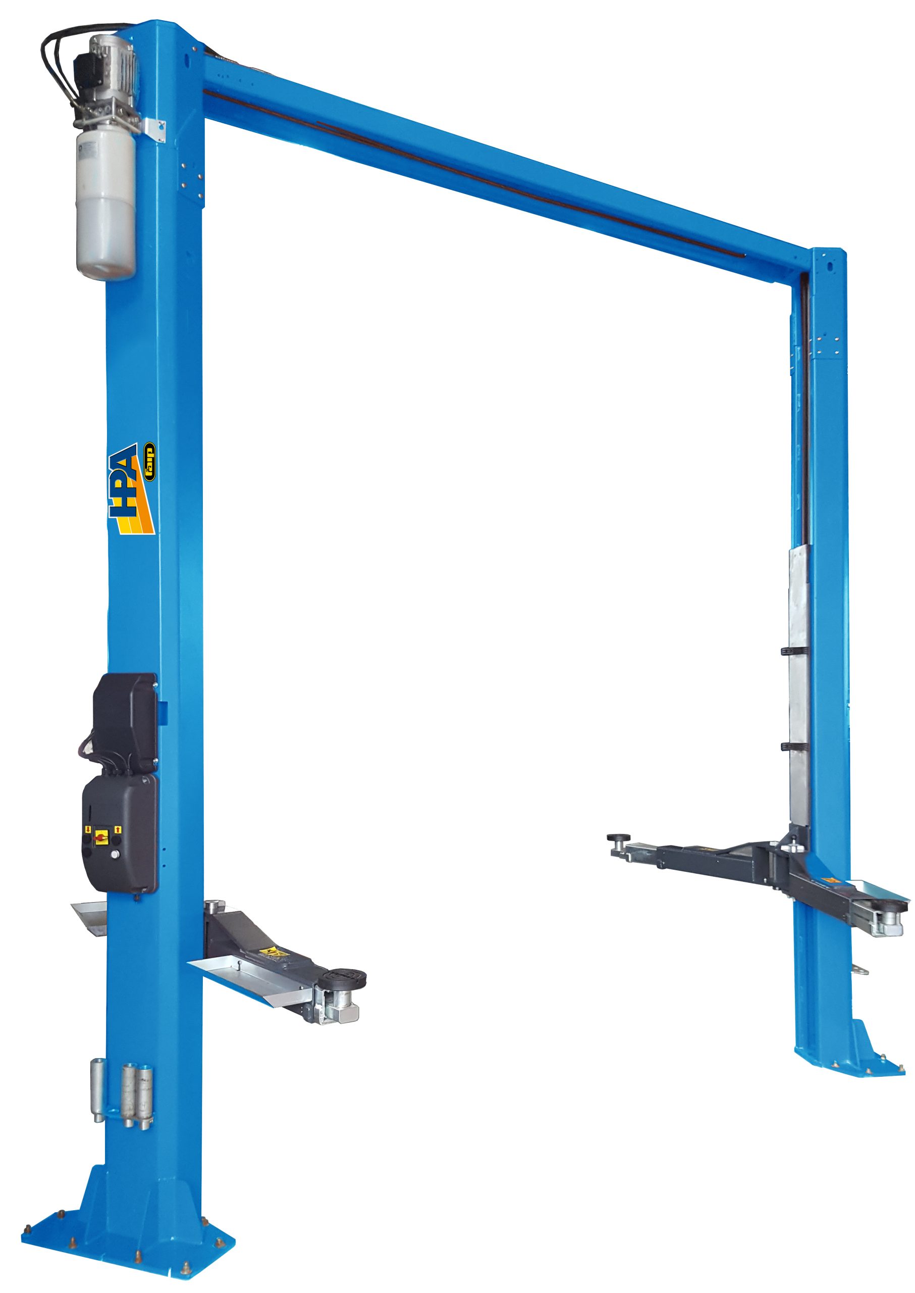 Hydraulinen HPAfaip P2C 245C – 4500kg nostokyvyllinen 2-pilarinostin, joka soveltuu nostamaan autot henkilöautoista kevytkuorma-autoihin.