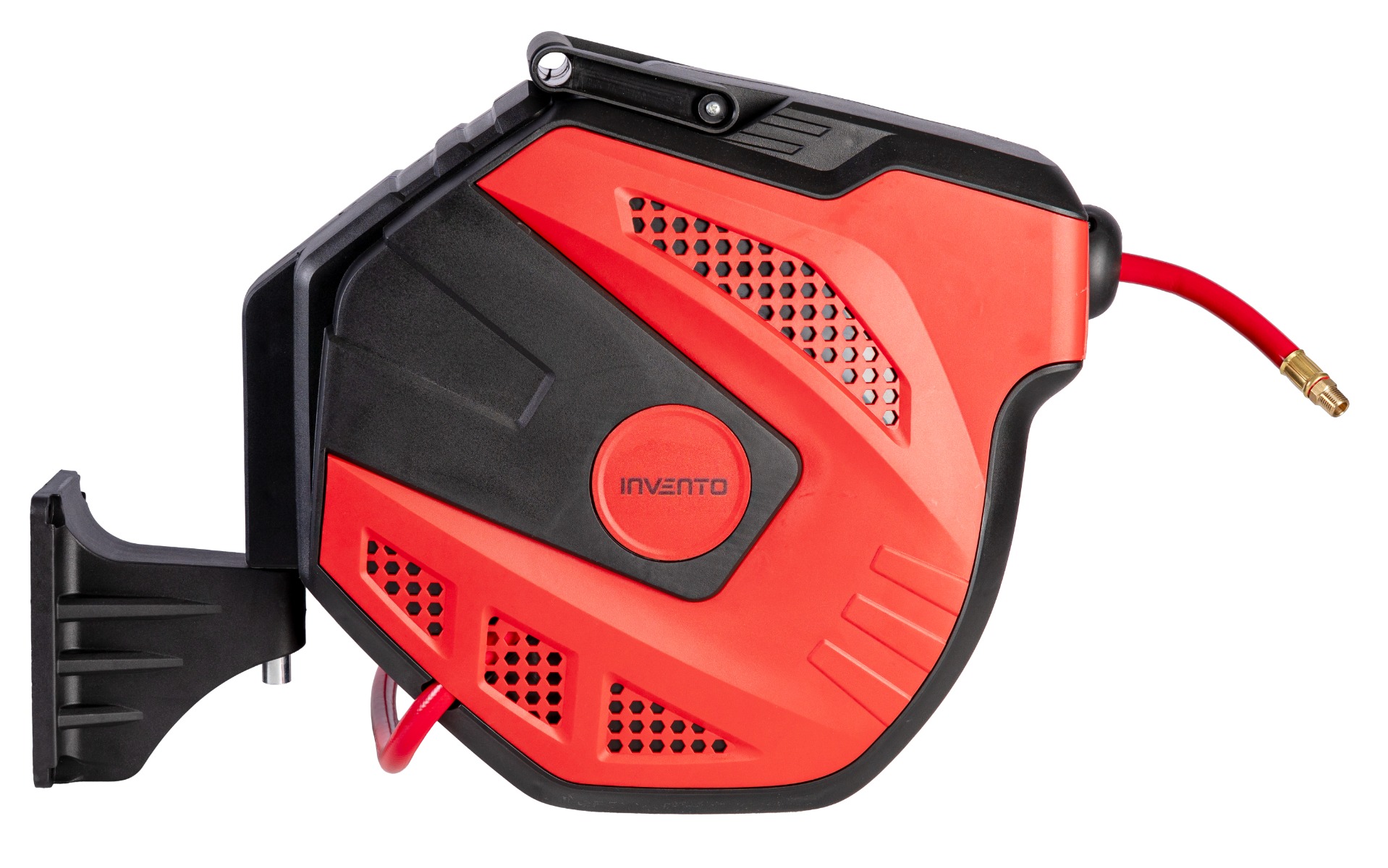 Brand: INVENTO Casing Material: PP Casting Color: red-black Hose Length: 20+2m Hose color: red Hose Material: PVC Hose Size: 3/8″(9.5 x 15.8mm) Fitting: 1/4″BSPT male thread Working Pressure: 150psi (10 bar) Bursting pressure: 450psi (30 bar) Working temperature: -5°C to + 55°C Bracket (plastic) and screws are included Size:51*27.5*47cm G.W.:11kgs N.W.:10kgs Smoothly rewind the hose automatically. Automatically locks at every 5cm Slow retraction and free stop Hose guide system Wall mounted and 180 swivel CE & ROHS Approval Manual included