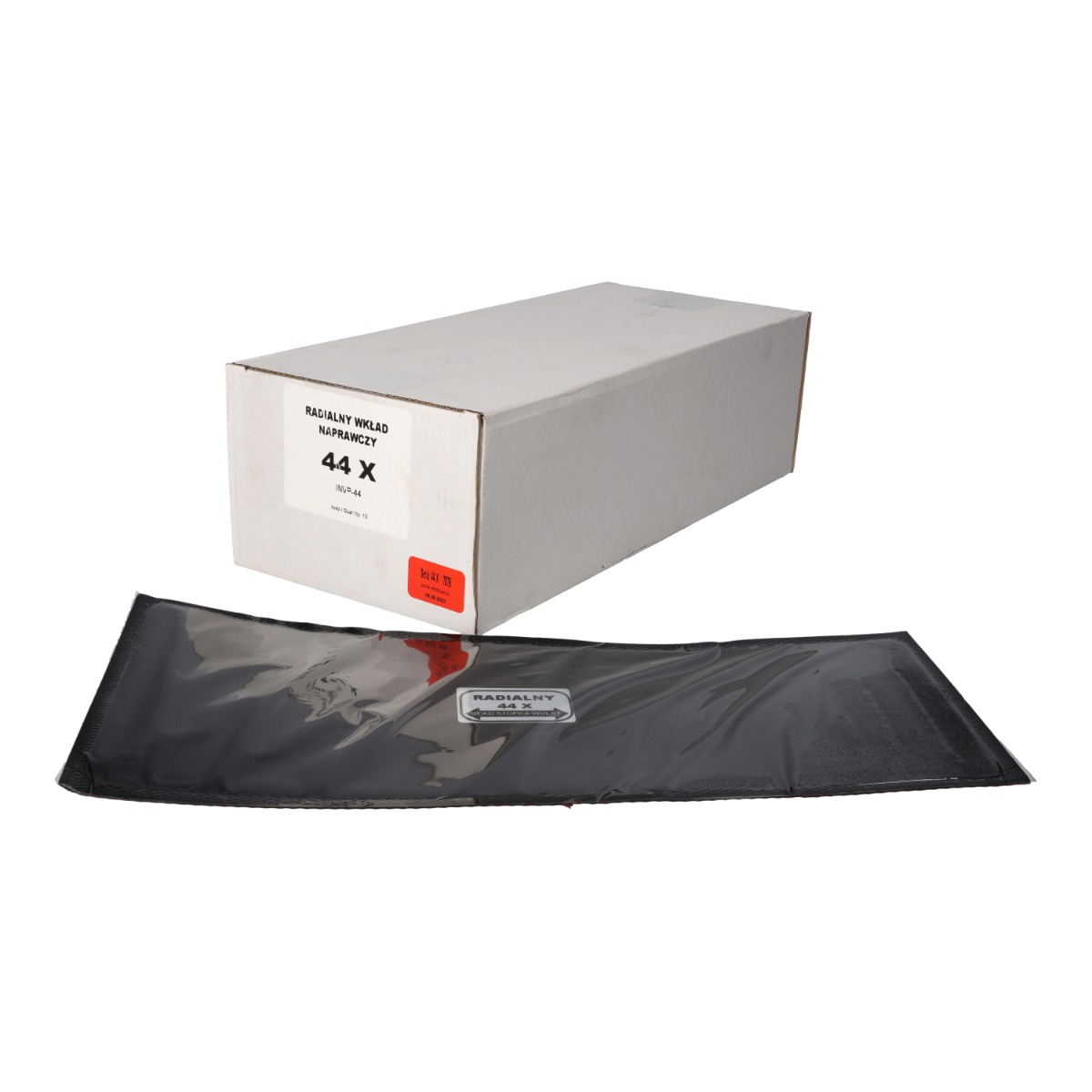 Radial tire repair patches 44X, size 141×331 mm are specialized patches used to repair radial tires. These patches are constructed using a special rubber compound and nylon fibers, similar to bias ply tire repair patches. The fabric construction of radial tire repair patches is designed to match the structure of radial tires. Radial tires are constructed with layers of plies that run perpendicular to the tire’s centerline, providing greater stability and flexibility. The fabric construction of radial tire repair patches is engineered to replicate this radial ply structure, ensuring compatibility and optimal performance when repairing radial tires. The rubber compound used in these patches is formulated to provide excellent adhesion to the tire surface, ensuring a strong and long-lasting bond. The inclusion of nylon fibers adds reinforcement and strength, preventing further damage or separation of the tire layers