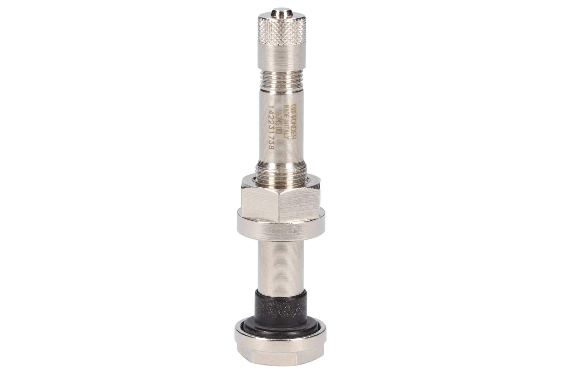 60 MS/9.7 – ALCOA 60 nickel-plated valve for tubeless alloy wheels of lorries and buses with a valve seat of 9.7 mm. Manufacturer: WONDER. For tightening, use dedicated torque wrenches and screwdrivers. Tightening torque: 12÷15 Nm Seating diameter: 9.7 mm