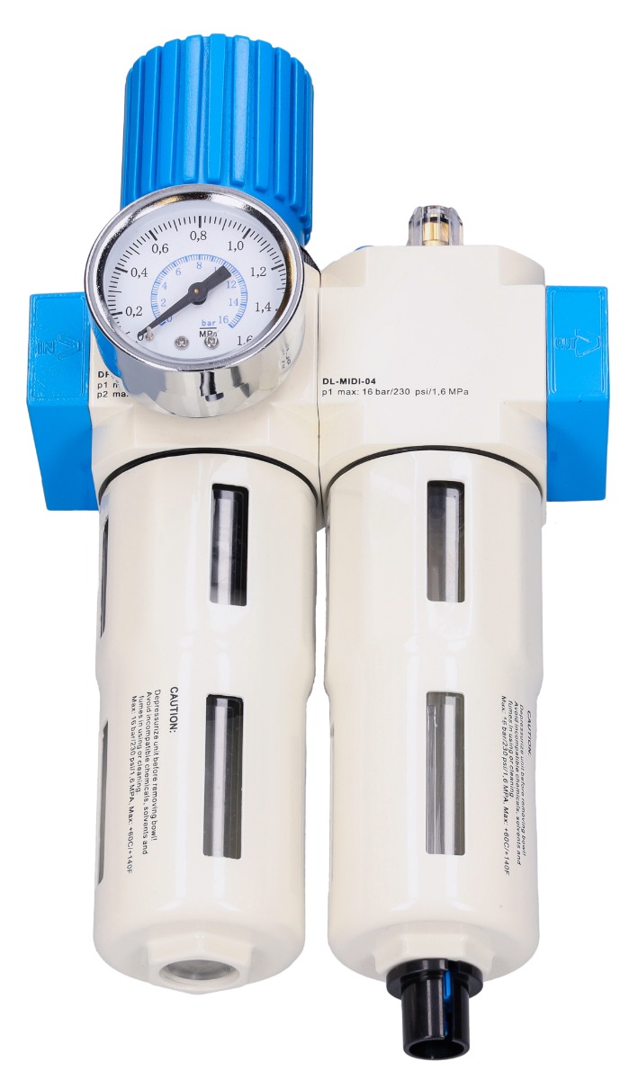 Air Preparation Unit Type MIDI 1/2″. The set consists of a filter with a reducer and an oiler.