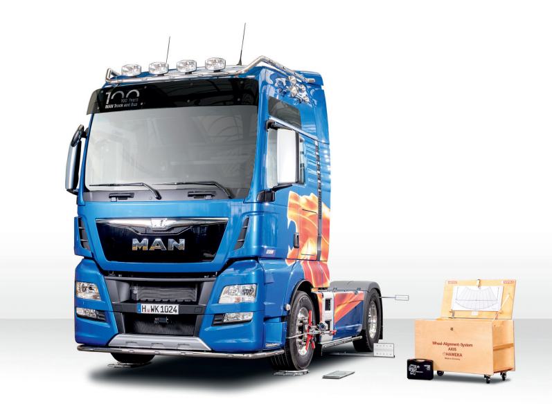 Laser-toiminen akseliston mittauslaite raskaalle kalustolle Haweka Axis500.