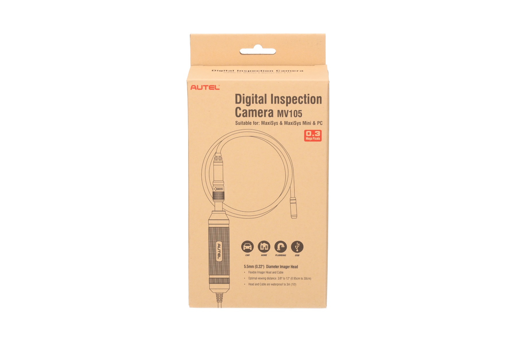 The Autel MV 105 digital inspection camera is a device that is perfect for inspecting and examining tight, hard-to-reach places that are not visible enough. Autel MV 105 gives you the ability to record high-quality digital movies and take photos. The economical endoscope is especially designed for the safe, fast and precise inspection of machines, engines, facilities and infrastructure. The most important features and properties: White LEDs for illuminating inspection areas The small diameter of the probe, only 5.5 mm, so it easily fits into tight spaces 1980 x 1080 resolution for photos and movies Works with PCs and Autel MaxiSys devices Waterproof Included: Autel MV105 Probe with a 5.5 m head Mirror for easy inspection Magnet Mini USB cable