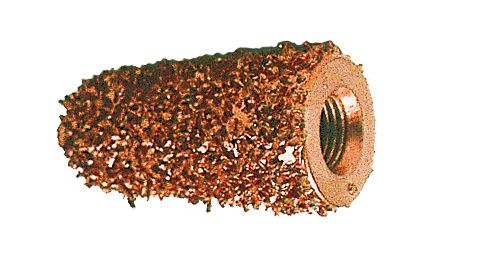 The K18 chip cone with a diameter of Ø 20 x 38 mm and a thread of 3/8″ is designed for the roughening of the outside of lorry, agricultural and oversized vehicle tyres. Recommended max. speed 4,500 rpm. Suitable for: 595-4034 drill chuck, NV 11 hexagonal tool holder with 3/8″ thread – 24 (cat. No. 519-6610), arbour MK 1 for flexible shaft (cat. No. 595-4027)