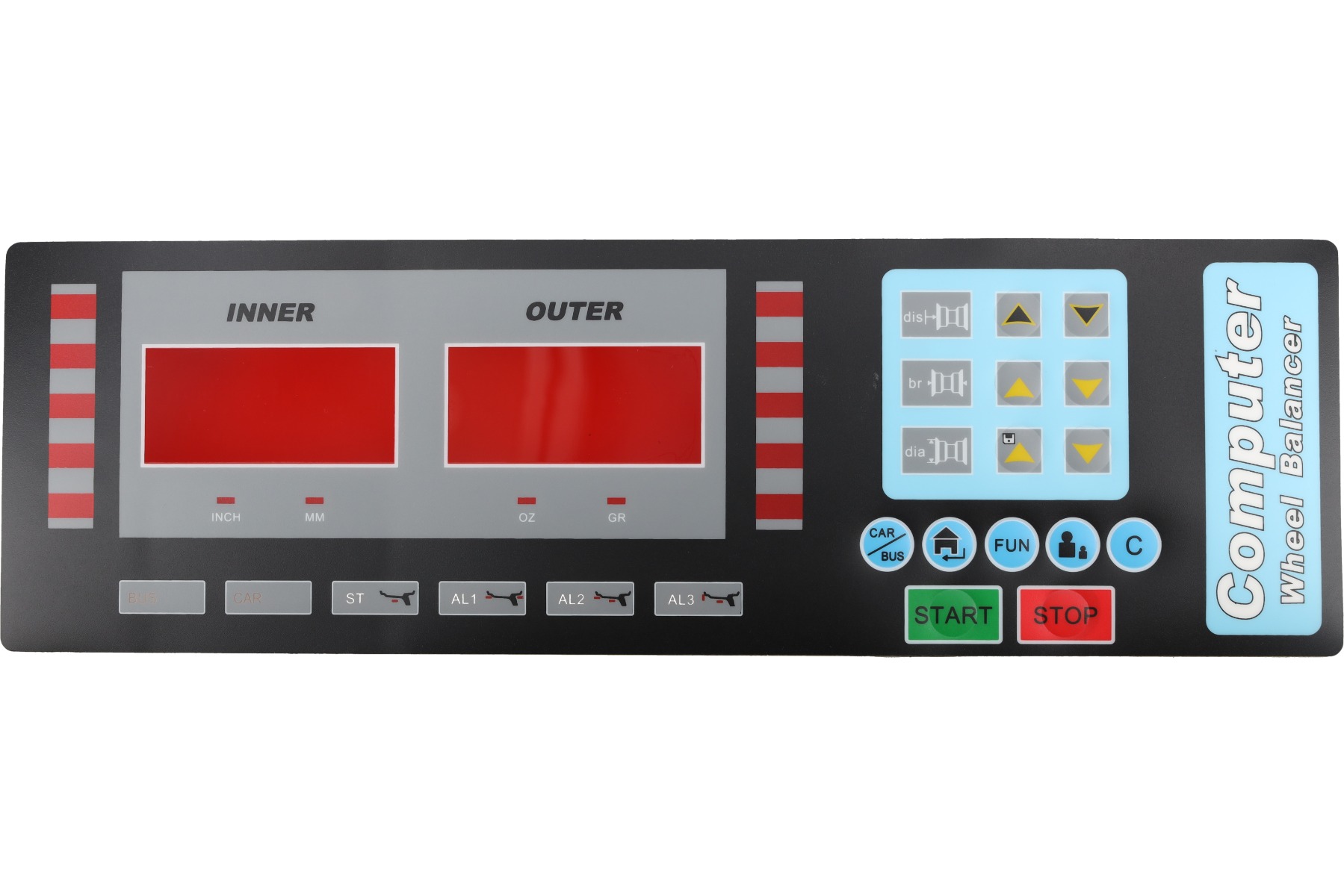 Control button panel – compatible with the INVENTO VBS 630 wheel balancer A control interface equipped with a set of buttons for operating the functions of the wheel balancer. Allows for data input, program selection, and cycle control. Application:Designed for use with the VBS 630 wheel balancer. Works directly with the CPU board. Made from durable materials, resistant to wear and heavy-duty use in workshop conditions.