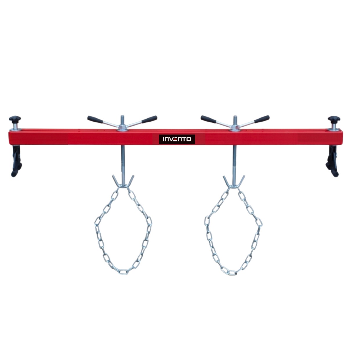 The INVENTO 500kg engine mount beam is a robust beam designed for long term use. Reinforced construction and thicker profiles provide strength, allowing the beam to hold up to 500kg. Strong chains and mounting anchors ensure safe and stable suspension. INVENTO beam has rubber fender protectors, which take care of your safety. Technical data: – Load capacity: 500 kg – Adjustable distance between fender mountings: from 720 mm to 1450 mm – Total length: 1500 mm – Anchor length: 340 mm – Includes: 2 chains, each 89 cm long The INVENTO engine support bar is not only a guarantee of solidity and durability, but also a practical solution for any mechanic or car enthusiast, providing safe and effective support during repair work.