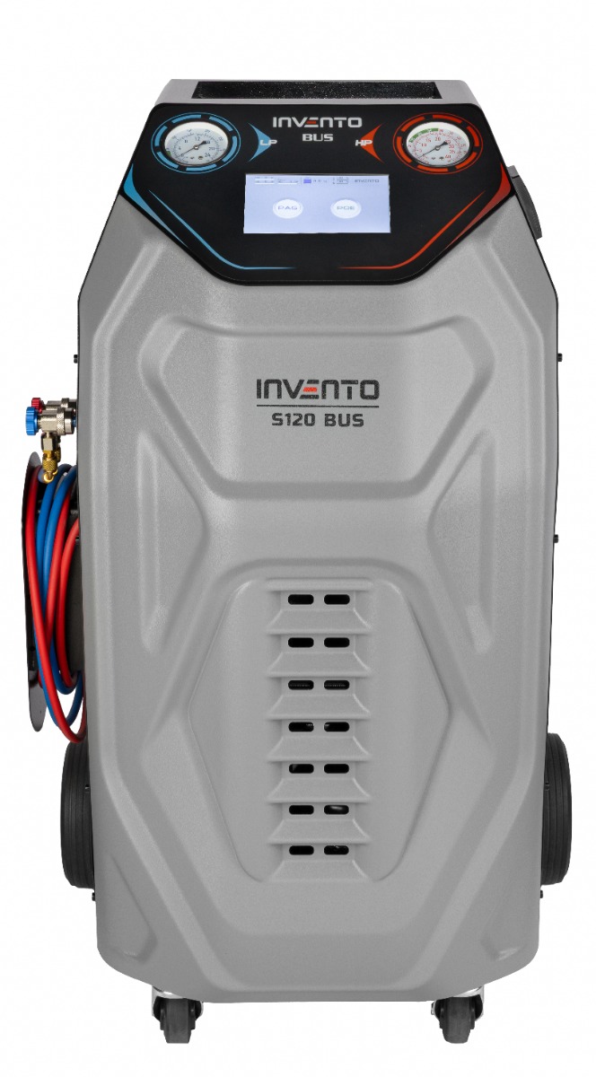 FULL Automatic Air Conditioning Service Device INVENTO S120 BUS R134a The INVENTO S120 BUS is a modern device designed for quick and hassle-free servicing of air conditioning systems in passenger cars and light commercial vehicles.