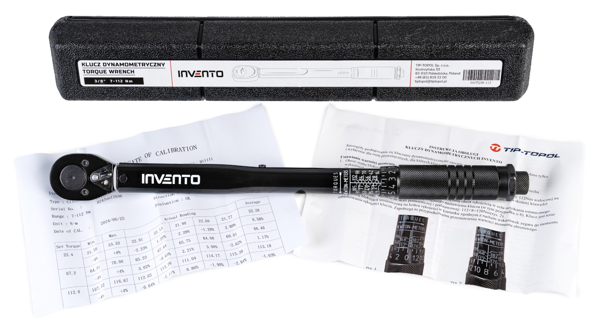 A torque wrench with a range of 7 – 112 Nm, featuring a calibration certificate and a 3/8″ shaft diameter, provides confidence through precise torque adjustment, ensuring that screws and nuts are tightened with the appropriate force, thus eliminating the risk of over-tightening or damaging components. This not only enhances user convenience but, above all, increases safety. Precision in tightening screws and nuts: The torque wrench allows for precise tightening according to specified torque, preventing over-tightening, which is crucial for maintaining accuracy. Overload protection: With its established torque range, the wrench protects fastening elements from overloading, minimizing the risk of damage, particularly to delicate or precise components. Versatility: The 7 – 112 Nm range wrench is sufficiently versatile to handle various applications, from light to more demanding tasks, meeting diverse needs. Clear scale in Nm and Kgs: The clear scale in Nm and kilograms facilitates work for users who prefer this measurement method, enhancing flexibility and user preference. Calibration certificate: Possessing a calibration certificate is essential for ensuring the accuracy and reliability of the tool. This certificate confirms meticulous calibration and compliance with specified standards, ensuring safety and quality work. Each piece has been calibrated, tested, and inspected. The accuracy of this wrench is +/- 4 percent, ensuring that each tightening is performed according to established standards. The Calibration Certificate further confirms compliance with required standards, giving the user full confidence in the tool’s operation. The presented model combines high-quality construction with an affordable price, making it an attractive choice for both professionals and hobbyists. Made of top-quality chrome-vanadium CrV steel, it ensures solidity and durability. Included in the package is a practical box for easy storage and transport of the wrench, along with an individual calibration certificate with the wrench’s serial number, confirming its authenticity, as well as a user manual in Polish, facilitating the user’s operation of the tool.