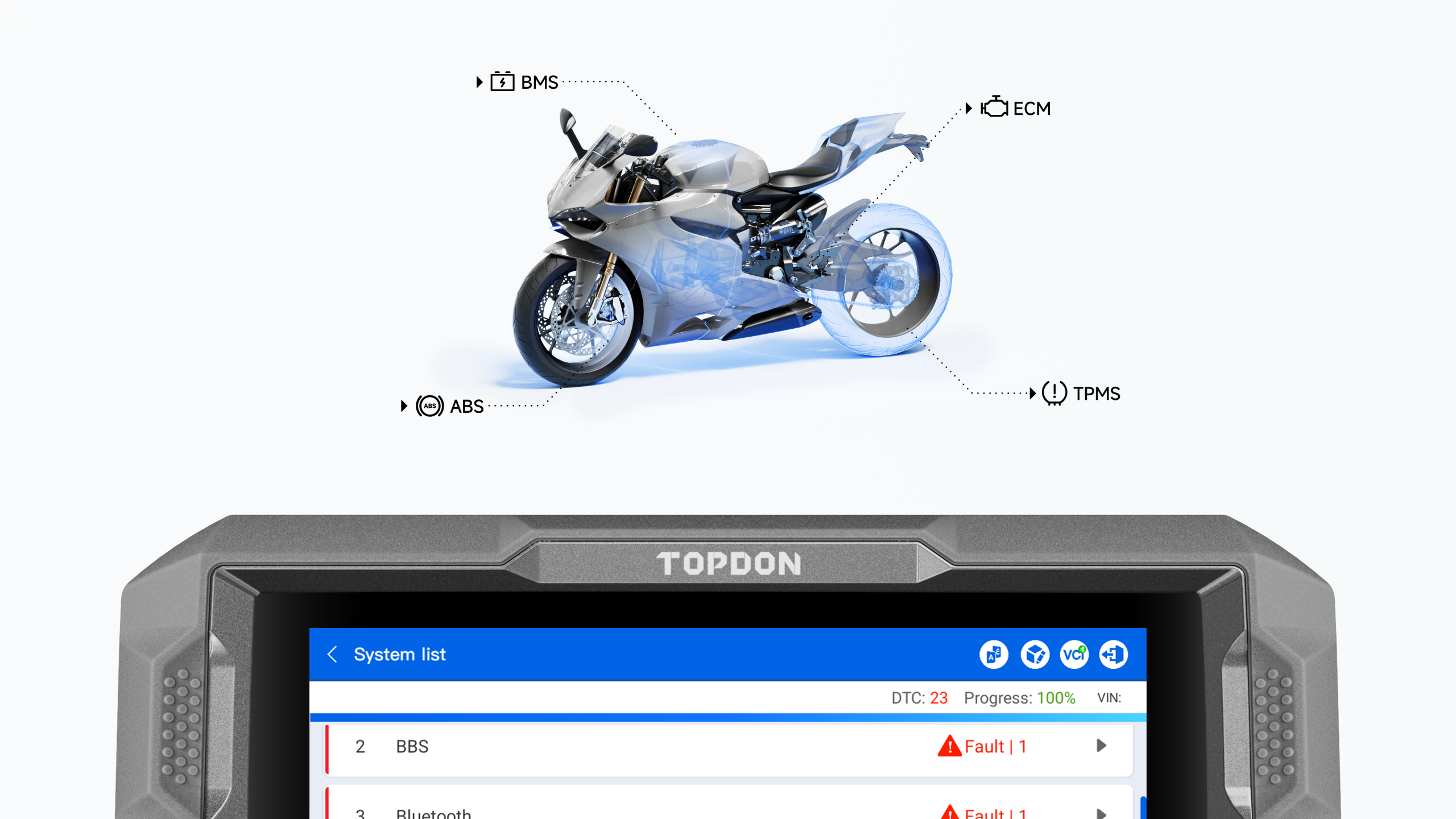 Asiantunteville teknikoille suunniteltu TOPDON UltraDiag Moto tarjoaa nopean, tarkan ja monipuolisen diagnostiikan.