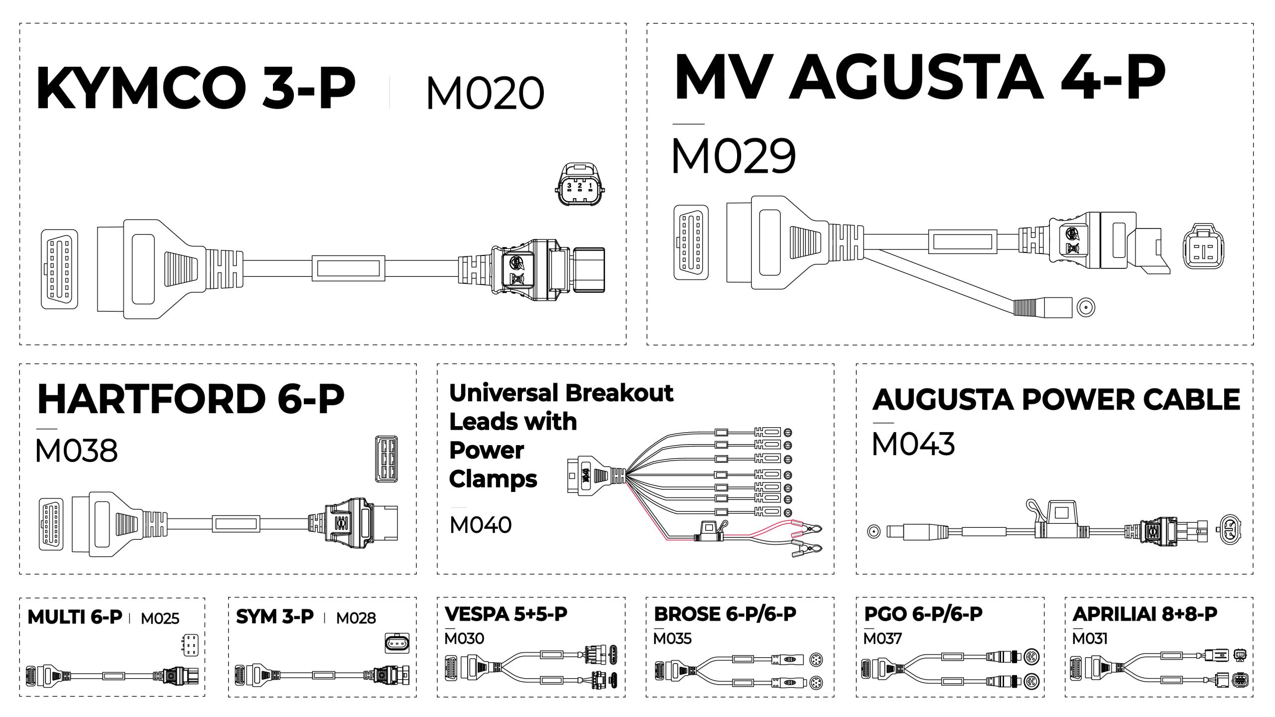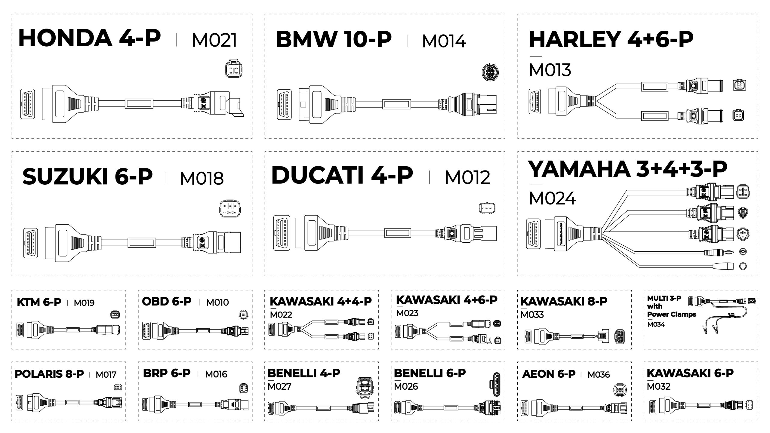 Se kattaa yli 80 moottoripyörämerkkiä (Honda, Harley-Davidson, BMW ja muut) ja tarjoaa koko järjestelmän skannauksen, kaksisuuntaisen ohjauksen, huoltotilojen nollauksen ja komponenttien mukautuksen.