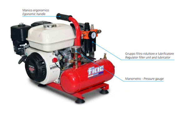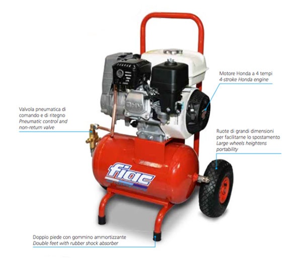 Polttomoottoritoiminen kompressorin ja aggregaatin yhdistelmä. Fiac 17 Hv 12bar