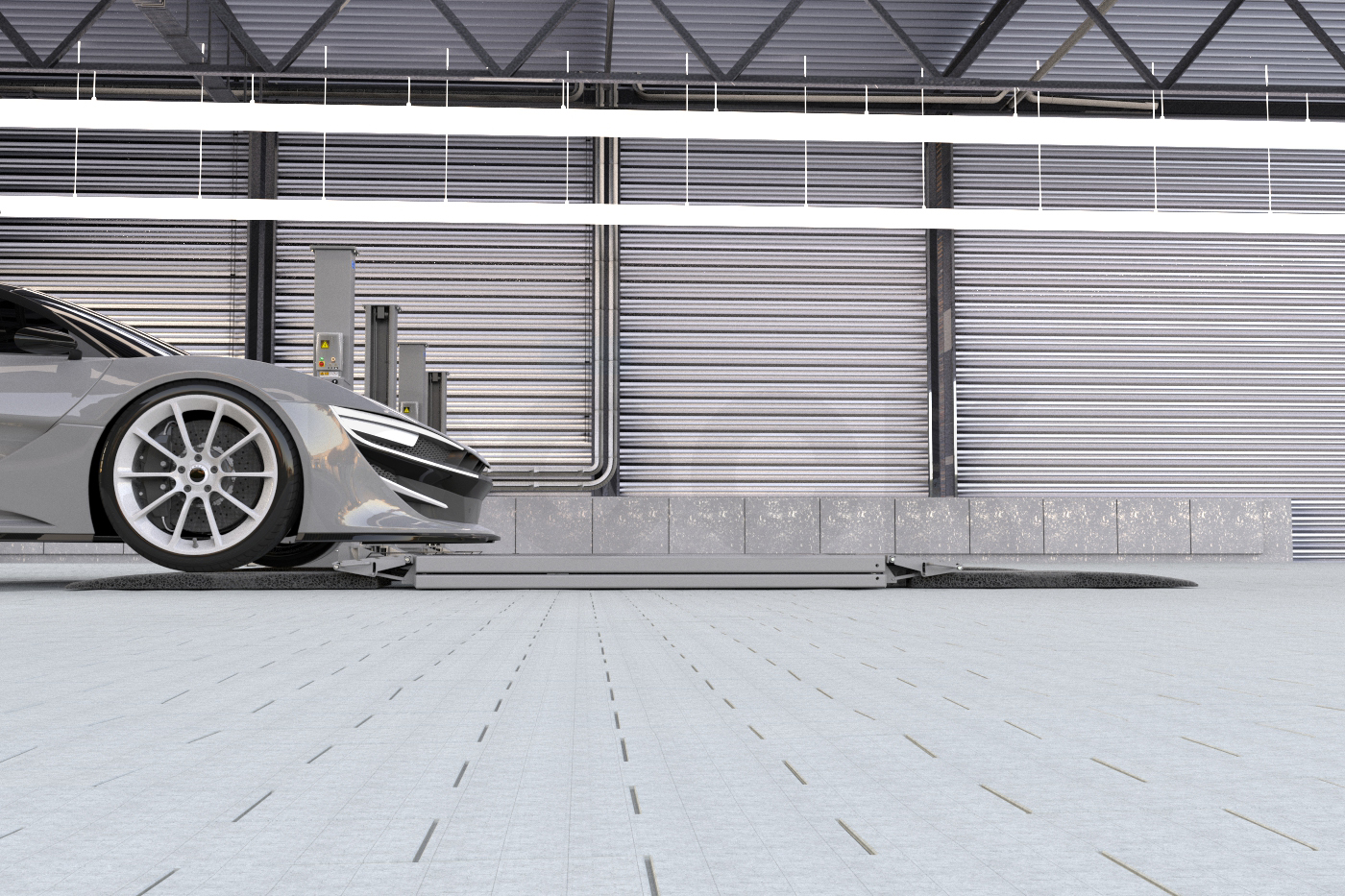 Siirtokahvallinen kumiramppi helpottaa matalien ajoneuvojen nostimelle ajoa.