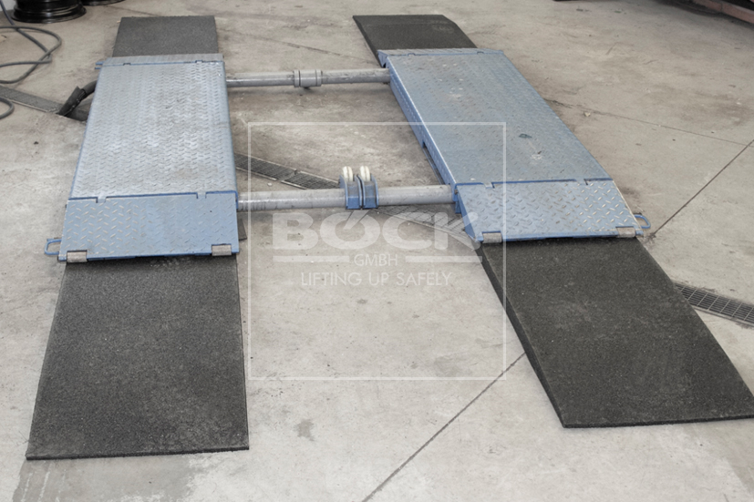 Kestävä, laadukkaasta materiaalista valmistettu kumiramppi, joka helpottaa matalien ajoneuvojen nostimelle ajoa.