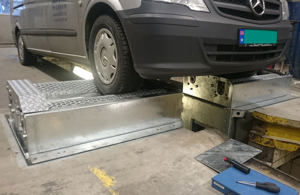 Akseli nousee tasaisena ylös, koska jarrudynamometri nostaa telaston neljän hyrdaulisylinterin avulla.