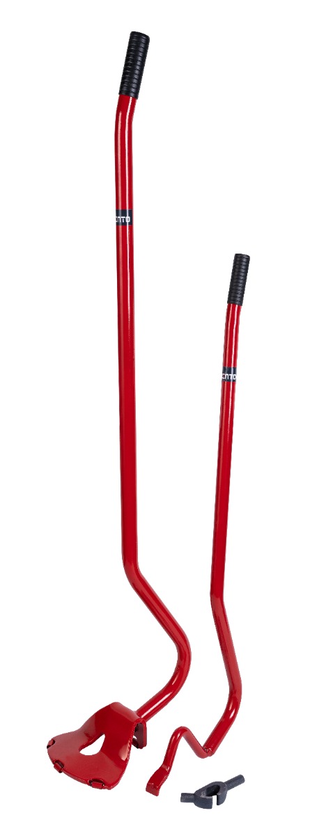 Manual Truck Wheel Removal Mounting Machine INVENTO We offer a professional manual truck wheel dismounting assembler by INVENTO, which is an indispensable tool in any workshop specializing in servicing large vehicles. The product is made of high quality steel, which ensures durability and reliability even in the most demanding working conditions. Practical set for independent replacement of tubeless tires on the wheels of trucks, trailers, buses or agricultural vehicles. With the help of appropriate fittings and buckets, it allows quick and safe installation and removal of truck tires. The INVENTO hand-held tire changer is designed for fast and safe removal of tires in the rim range from 22.5 to 24.5 inches. Ergonomic design and solid workmanship guarantee ease of use and longevity of the device. The specially contoured shape of the tips and handles prevents damage to the tire bead and rim. The pattern of the spoons was designed on the basis of precise measurements of the rim profile and does not allow excessive stress on the material during use. The optimally selected length of the spoons provides a comfortable lever for maximum efficient work with minimum effort. Product Advantages:DURABILITY: Made of the highest quality steel, resistant to mechanical damage.Efficiency: Allows quick removal of wheels, which speeds up work in the workshop.Versatility: The range of supported rims from 22.5 to 24.5 inches.Safety: Robust construction ensures stability and safety during use. When you choose a manual truck wheel dismounting machine from INVENTO, you are investing in quality and reliability, which translates into the satisfaction of your customers and the efficiency of your workshop.