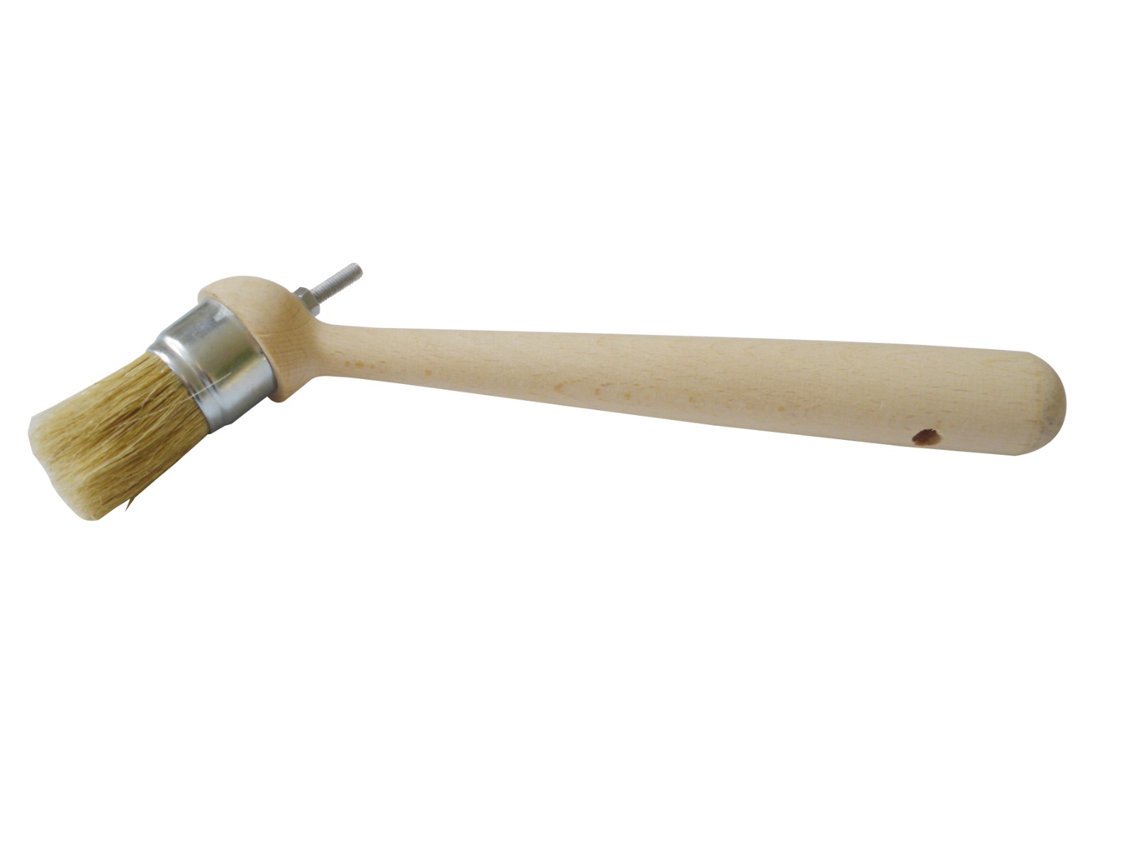 A special, durable and top-quality angle brush designed for applying mounting pastes to the tyre and rim during tyre fitting. It consists of a working part made of natural bristles and polyester, a zinc-coated cap and an ergonomically shaped handle made of natural hardwood. The specially shaped head of the brush makes it easy to grease the rim without bending the hand.The definite advantage of the brush is that it does not lose its bristles during use, which makes it long-lasting. Head diameter: 30 mm Bristle length 45 mm Handle length: 230 mm Brush total length: 275 mm