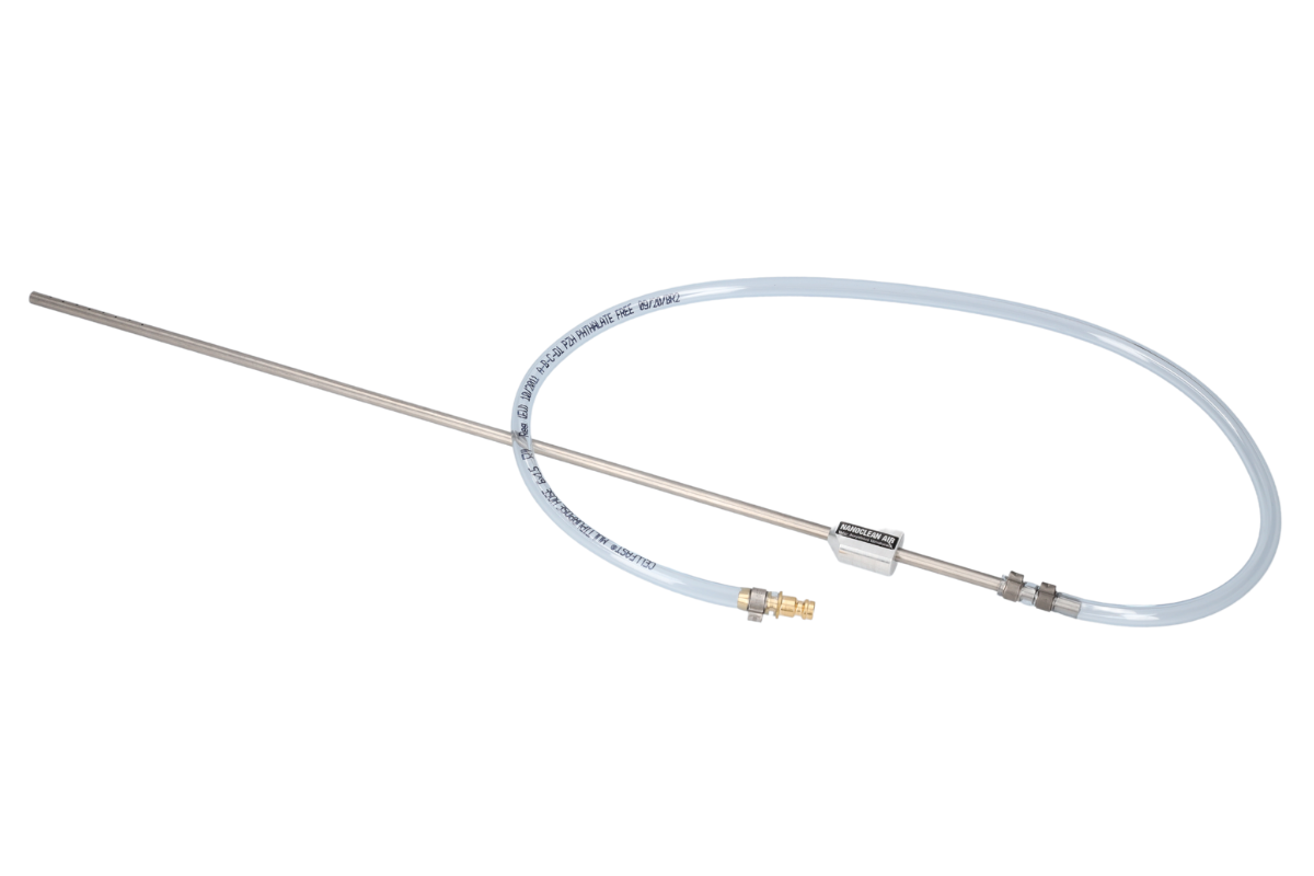 Stainless steel lance with side nozzles used in the Nanoclean Air Profi set. Working under pressure, it enables precise cleaning and disinfection of the evaporator with Nanoclean Air liquid sold in 5L packages. The flexibility of the lance allows it to be adapted to the system of channels in the vehicle.