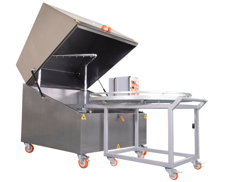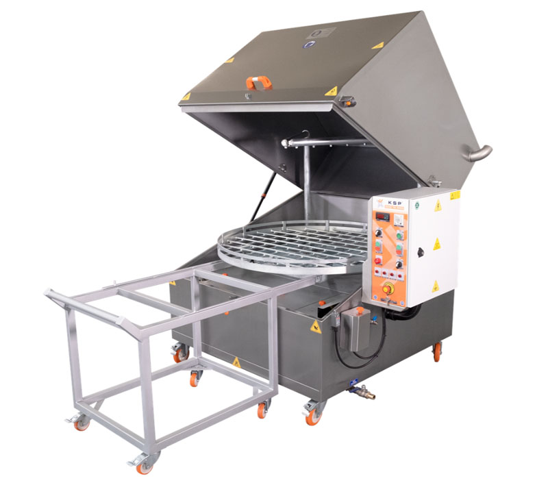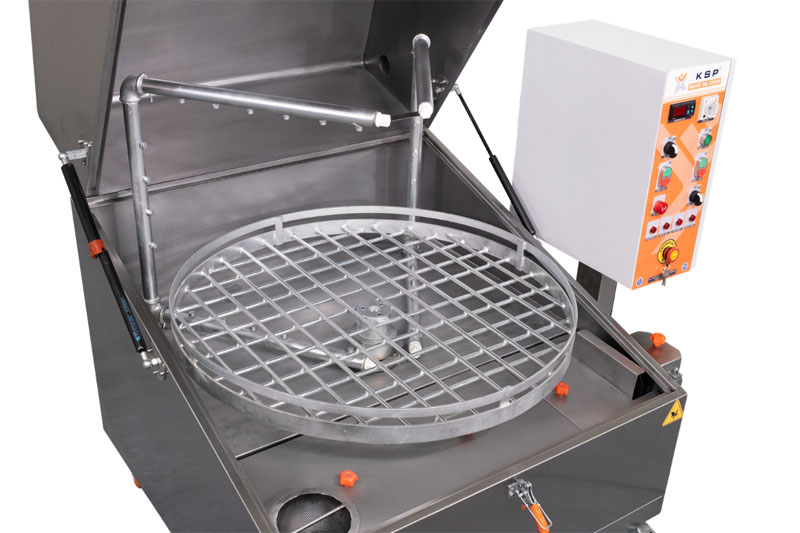 Tämä osienpesukone on vakiovarusteltu ulosvedettävällä pyöreällä pesukorilla jossa on mekaaninen pyöritys, sekä sähkömekaanisella ohjauspaneelilla. Laitteen saa joko AISI 430- tai AISI 304-luokan ruostumattomasta teräksestä. Lisävarusteena on saatavilla myös PLC tietokoneohjaus, jonka avulla pesukoneeseen voidaan säätää tarkat pesuohjelmat, seurata pesuohjelman kulkua ja ajastaa lämmitys.