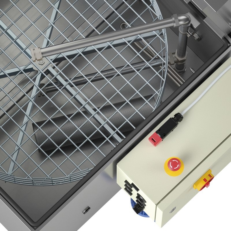 Osienpesukoneessa on pyöreä pesukori, jossa mekaaninen pyöritys. Koko laite on valmistettu ruostumattomasta teräksestä ja osienpesukoneessa on mekaaninen ohjauspaneeli. Laitteeseen on mahdollista säätää pesun kesto (0-30min) sekä lämmitys. Näihin osienpesukoneisiin on myös mahdollista asentaa lisävarusteina öljynerotin.