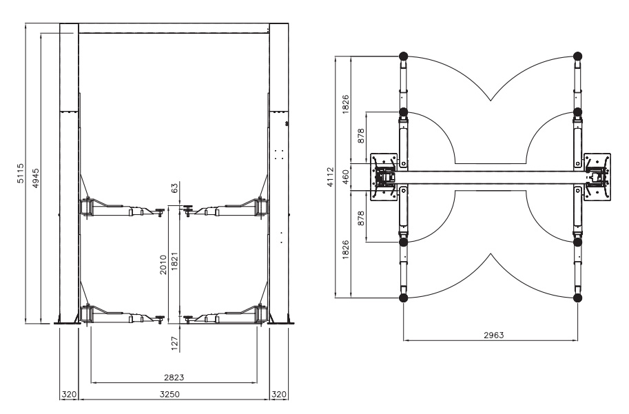 Pitkälle ulottuvat  nostokäpälät (1826 mm) ovat erinomaiset suurien ajoneuvojen nostoon. Mutta koska ne ovat kolmiosaiset niitä saa pienennettyä niin, että sopivat myös pienempien autojen nostamiseen, mikä tekee 2-pilarinostimesta todella monikäyttöisen.