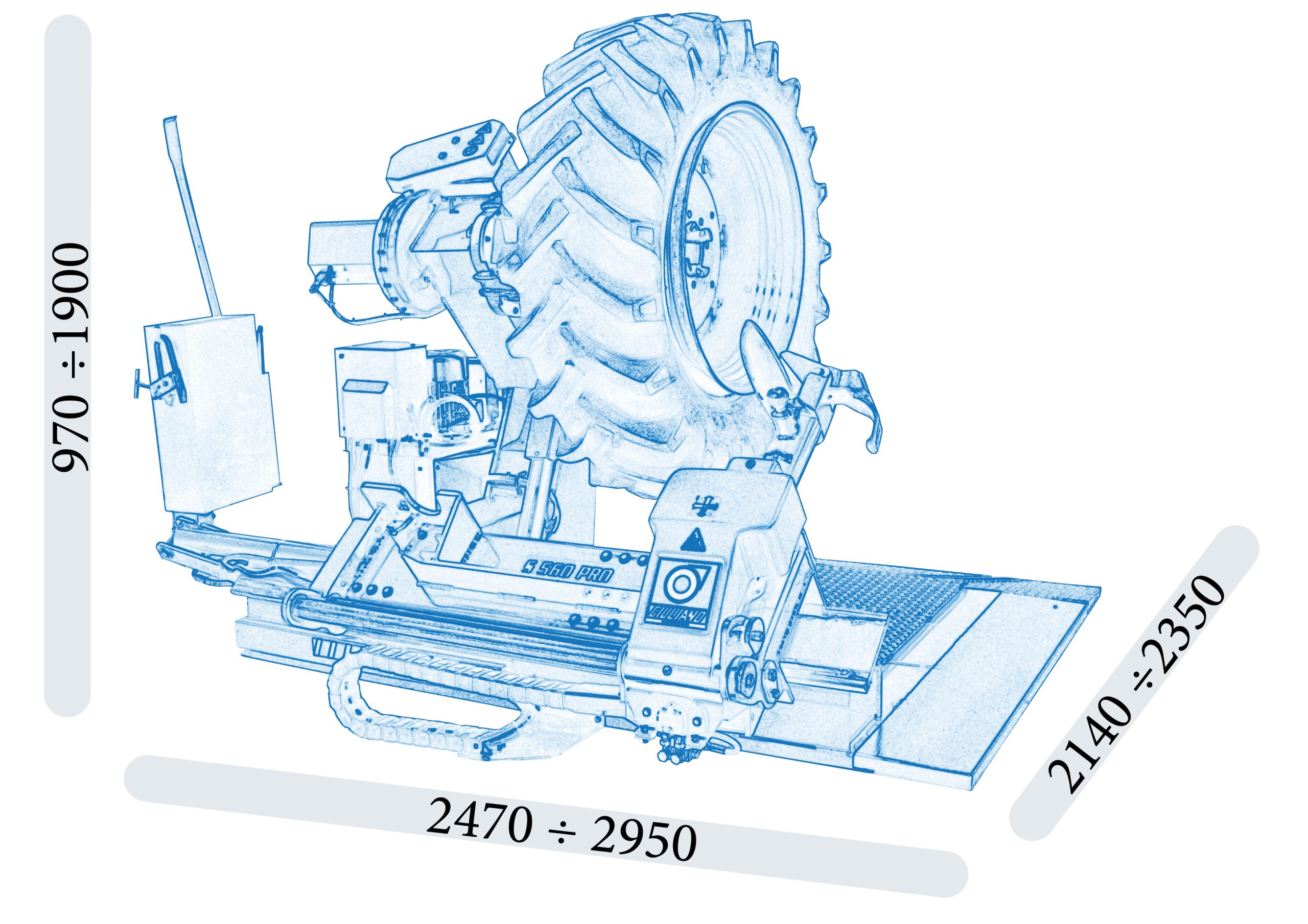 Täysautomaattinen raskaan kaluston rengaskone suurille renkaille, aina 58″ asti Giuliano S560 Pro 2V.
