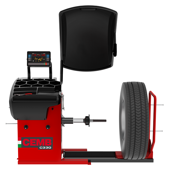 Cemb C330 raskaan kaluston renkaan tasapainotuskone on erinomainen valinta sellaisiin kohteisiin, jossa halutaan tehdä tasapainotuksesta tehokasta ja helppoa