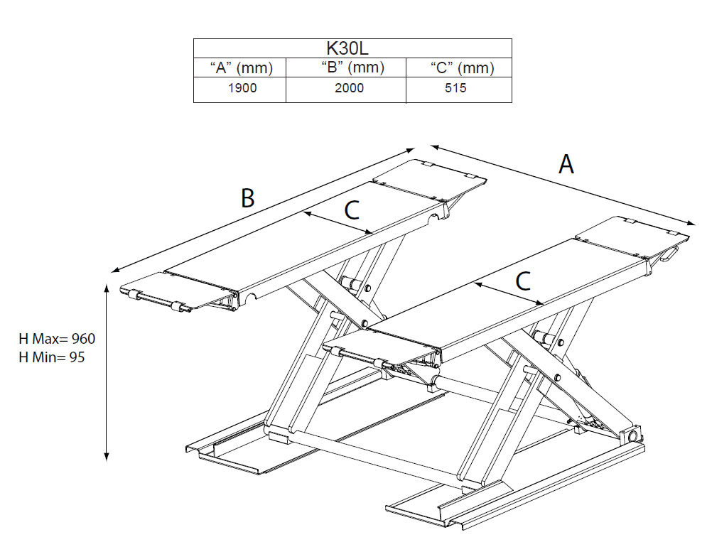 K30L on erittäin matala rengastyönostin joka on varustettu tuplasylintereillä, eikä siinä näin ollen ole mekaanisia lukituksia.