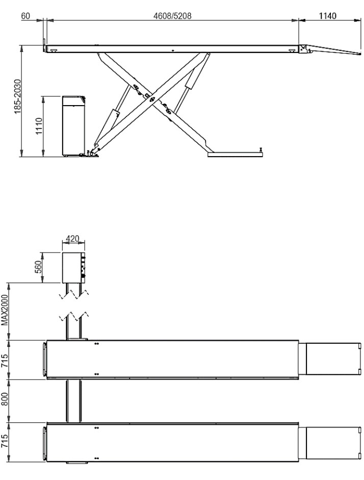 Tämä erittäin vahva 5500kg nostava saksinostin on erinomainen tilaa säästävä nostin, jonka ajosiltojen pituus on valittavissa kahdesta eri vaihtoehdosta.