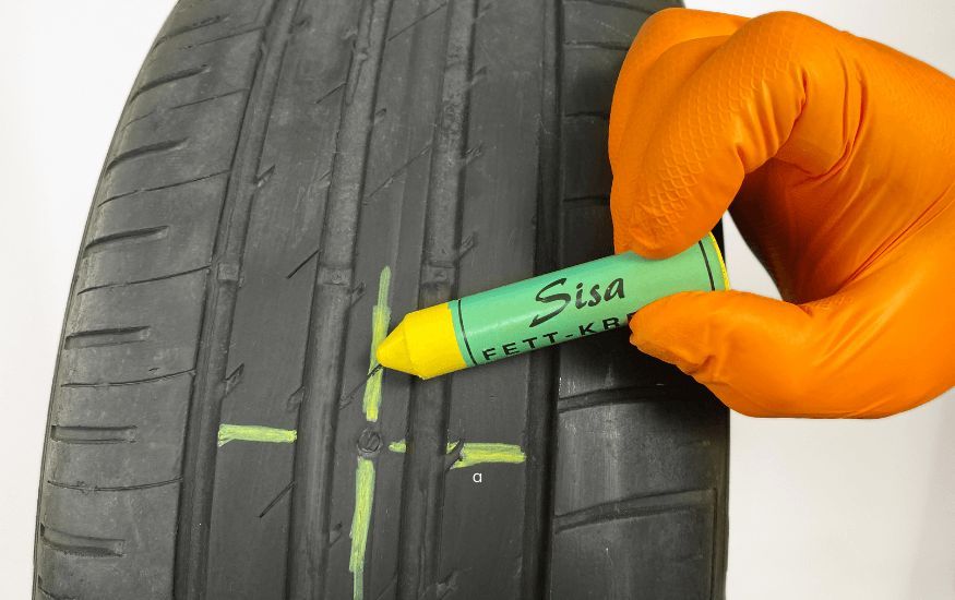 SISA thick yellow chalk used to mark or describe damaged areas on the tyre during repair.