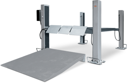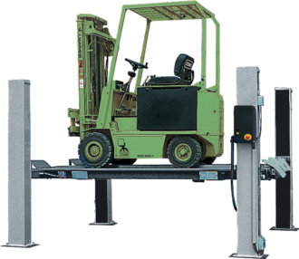 T’ämän todella kompaktin Space 4-pilarinostimen erikoisuutena on erittäin lyhyet ajosillat, mutta tehokas nostokyky. Trukkinostin ei vie näin liikaa tilaa korjaamolta, mutta on tarpeeksi vahva nostamaan suuretkin trukit ja kuormaajat.