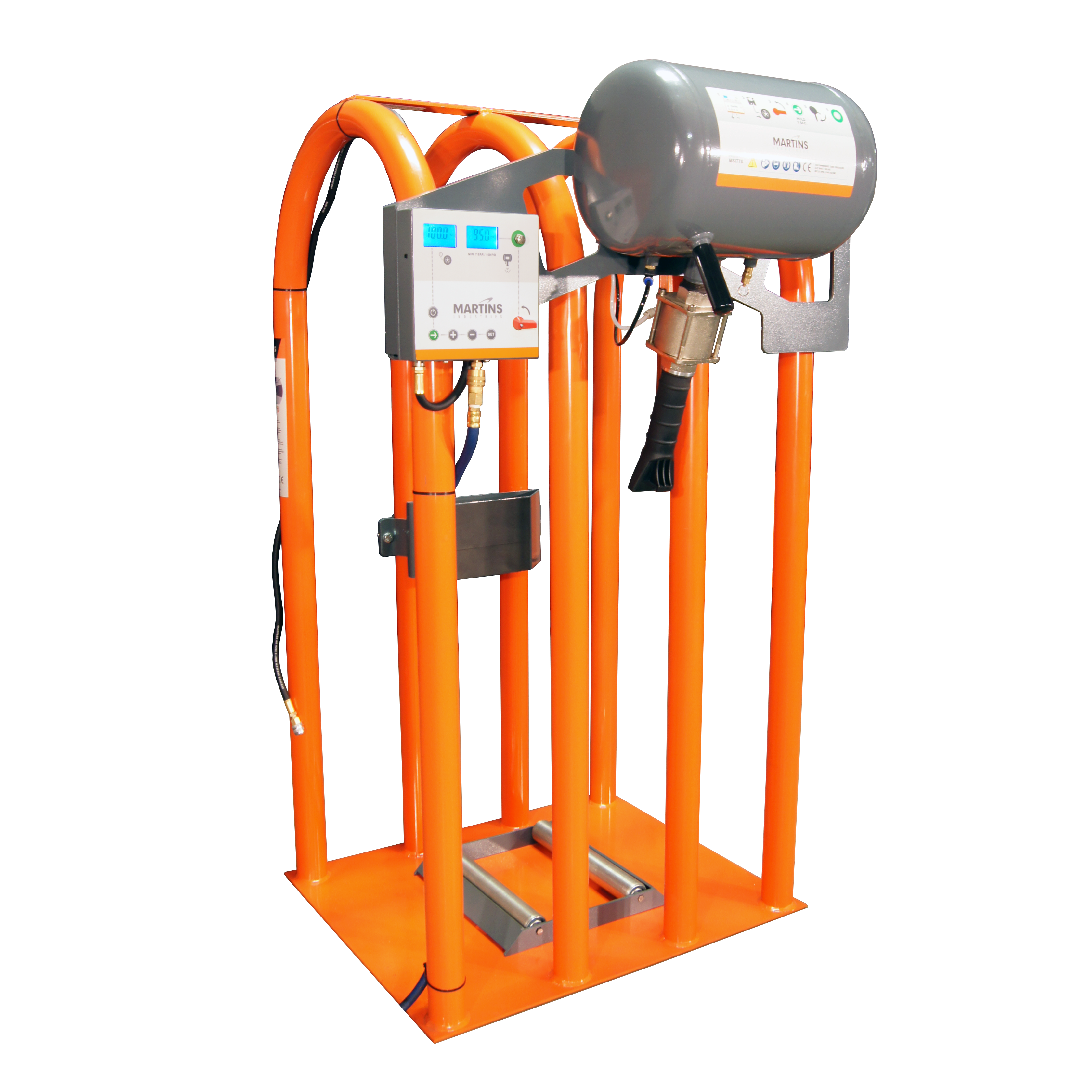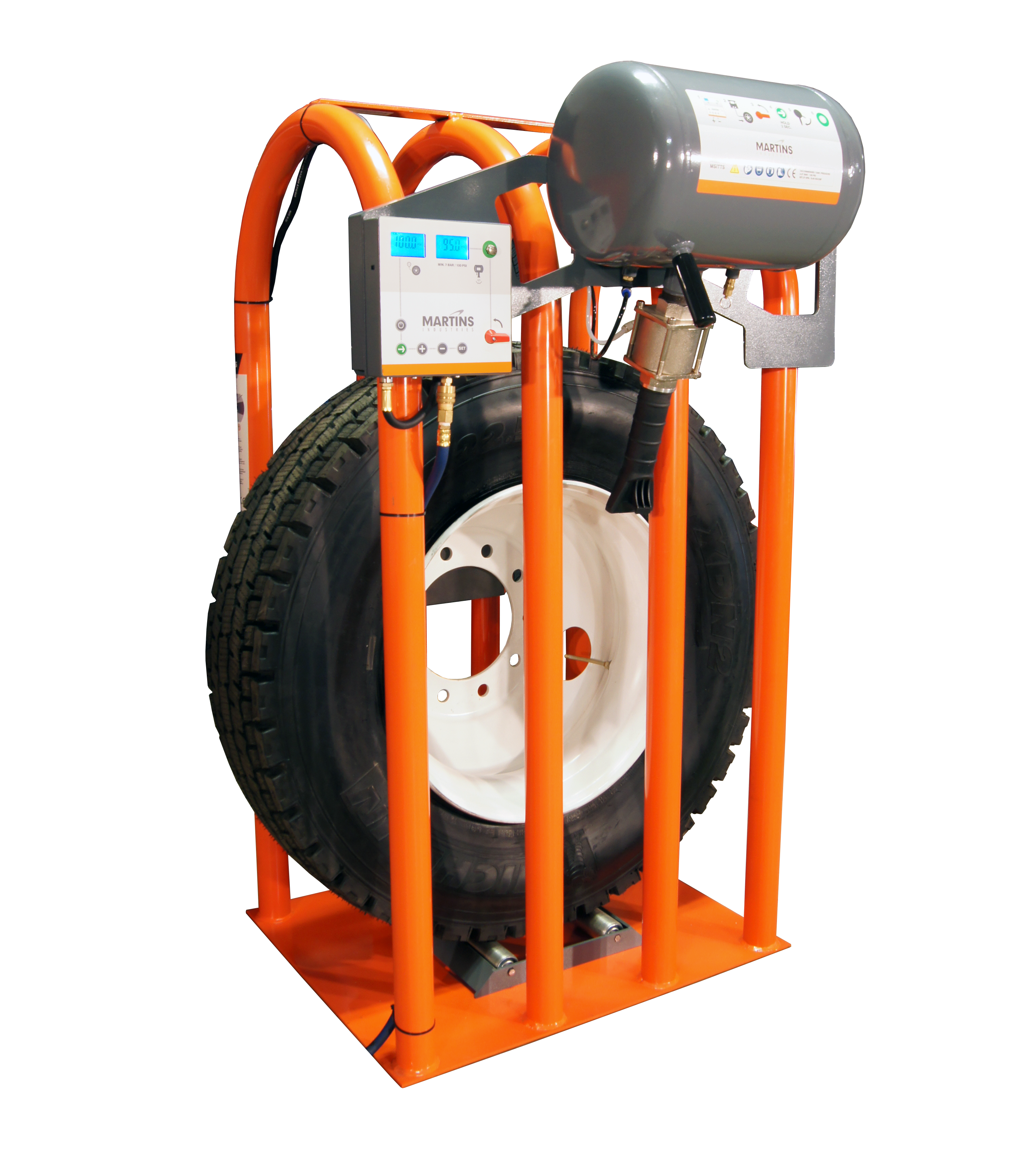 Renkaiden täyttölaitteen täydellinen sarja on täydellinen yhdistelmä kaikkia renkaiden täyttölaitteita, joita kuorma-auton rengasliikkeessäsi on oltava. Kuorma-auton tai linja-auton renkaiden, joiden halkaisija on enintään 1,19 m, täyttäminen on helppoa ja tarkkaa. Automaattisessa renkaiden täyttölaitteessa on 4 mittayksikköä (psi, bar, kPa, kg/cm2), ylipainejärjestelmä, LCD-näyttö ja taustavalo, jotka auttavat sinua täyttämään renkaasi tarkasti. Kun rengas on täytetty oikeaan paineeseen, äänimerkki varoittaa, että rengas on saavuttanut halutun paineen. Tarjoaa hyvän suojan työntekijöillesi, kun täytät kuorma- ja linja-auton renkaita. Käytä MARTINS INDUSTRIESin turvallisia renkaiden täyttöhäkkejä, jotka täyttävät CE- ja DGUV – BGR 157 -vaatimukset. MARTINS INDUSTRIESin renkaiden täyttöhäkit ja täyttötyökalut ovat markkinoiden parhaita ja turvallisimpia valintoja, koska niiden valmistusmateriaalit ja viimeistely ovat laadukkaita.