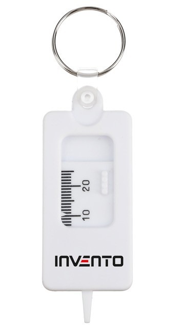 INVENTO tyre tread depth gauge is an affordable and highly practical tool for quick tread depth measurement. You can simply attach it to your keyring and have it with you whenever you need it! Operation is extremely simple – just place the tip of the gauge into the tread groove, read the result from the scale, and you’re done. The device features a sliding lock, and the scale is marked every 1 mm (1–20 mm) for clear and accurate readings. How to measure tread depth correctly: Measure the depth of the grooves in the central part of the tread. Take measurements in the same groove at three evenly spaced points to ensure the tread wears evenly. Press the measuring tip firmly to the bottom of the groove and read the value from the scale. You can also check the side grooves – uneven wear may indicate incorrect wheel alignment.