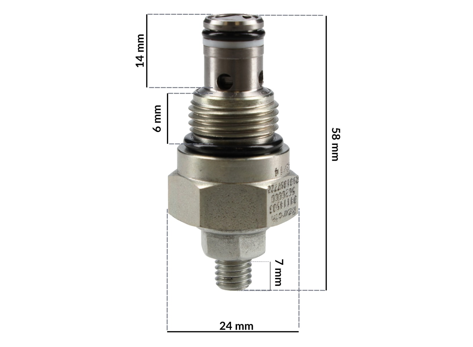Hydraulic system component responsible for regulating working pressure. It protects the system by automatically diverting excess hydraulic fluid to the reservoir when the pressure exceeds the safe operating level. Application:Designed for use with INVENTO TCS626 and TCS656 tire changers. Essential for the safe and proper functioning of the pump and actuators. Made of durable, high-pressure-resistant materials suited for tough workshop environments.